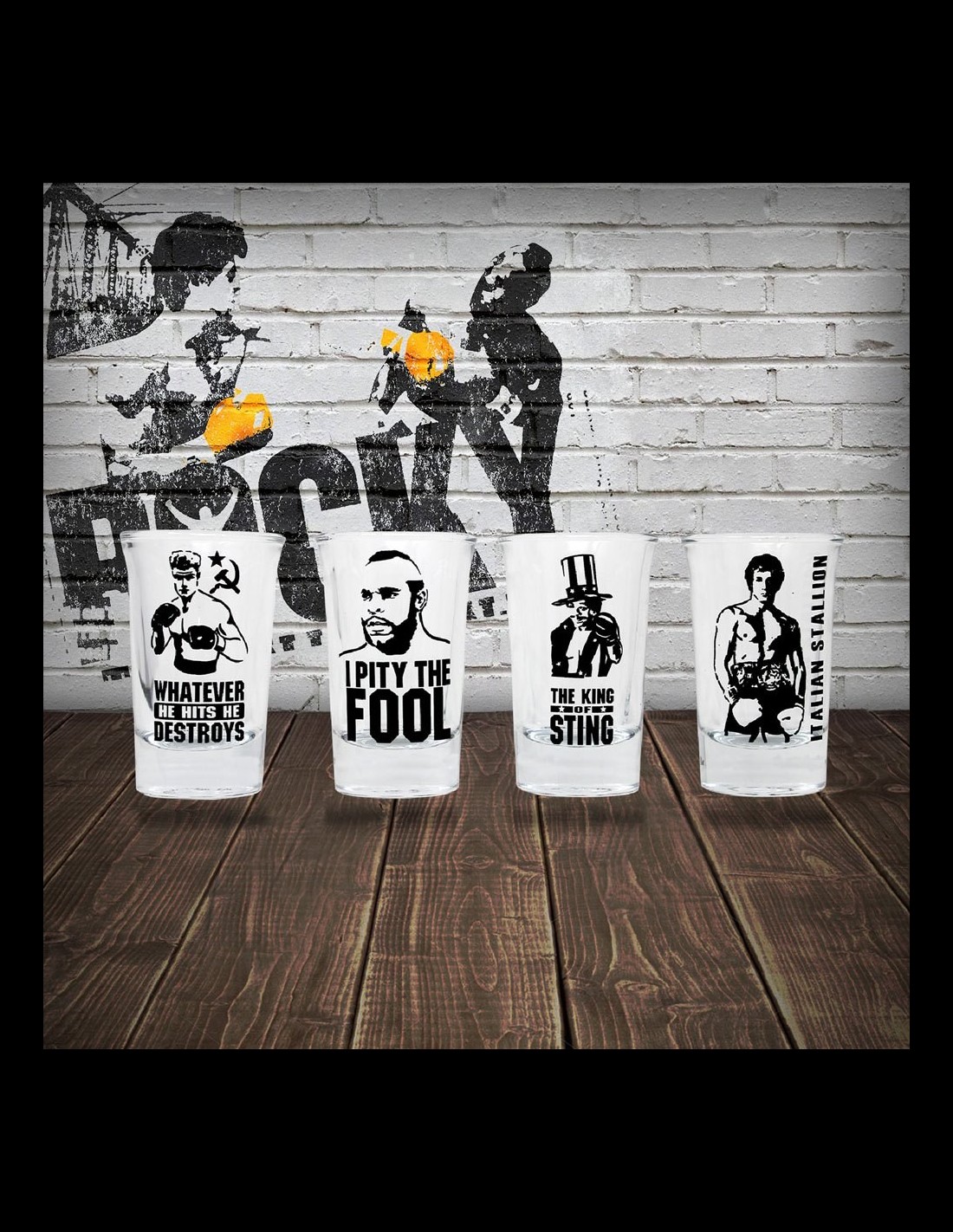 Set di 4 bicchierini da liquore da 35ml a tema Rocky per il 45esimo anniversario.