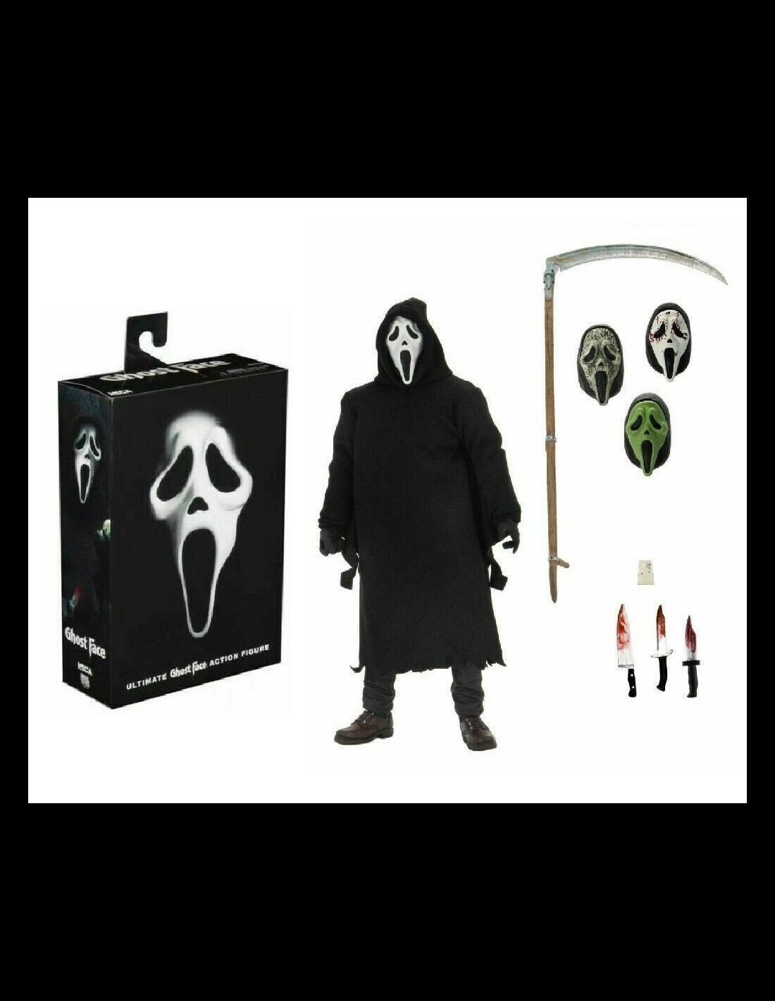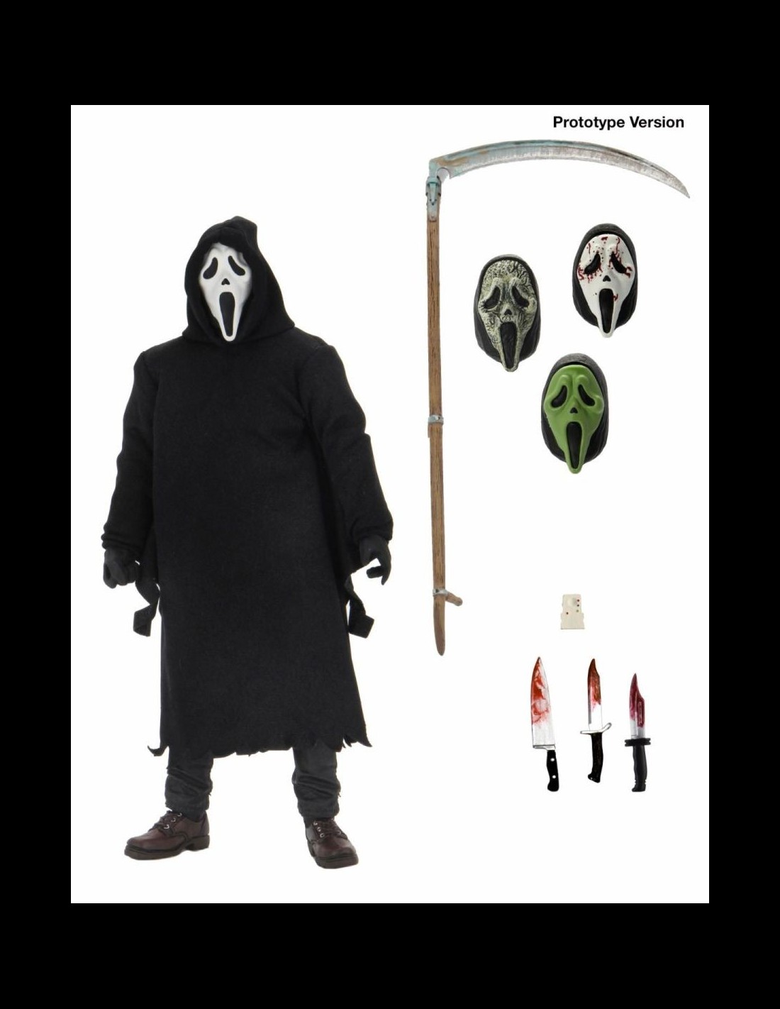 Neca presenta una nuova action figure per la serie Ultimate di Ghostface! La figura indossa dettagliati abiti in vera stoffa e dispone di falce, pugnali e ben tre teste opzionali (di cui una con effetto blow in the dark!).