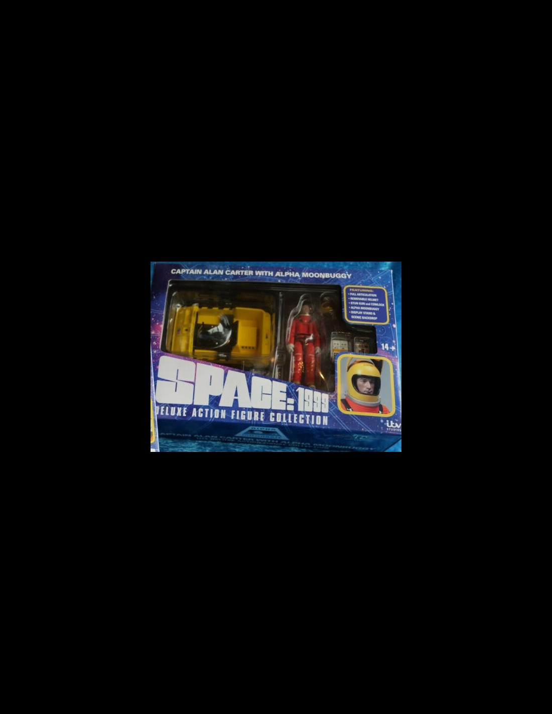 Il Capitano Alan Carter da Spazio 1999 prende vita in questa fantastica figura articolata, che lo immortala con tuta spaziale (l'elmetto è removibile) e classici accessori (StunGun e Comlock). La confezione include una fantastica replica in scala dell'iconico Moonbuggy. Il veicolo, accuratissimo e dettagliato, è perfetto per accogliere le figure in posizione di guida.