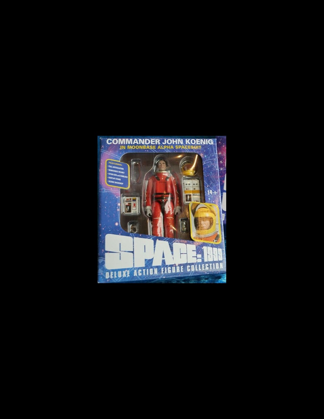 Il mitico comandante Koenig da Spazio 1999 prende vita in questa fantastica figura articolata, che lo immortala con tuta spaziale (l'elmetto è removibile) e classici accessori (StunGun e Comlock). Il tutto è poi arricchito da una base display decorata a tema.