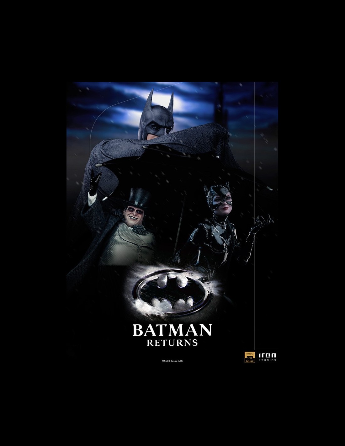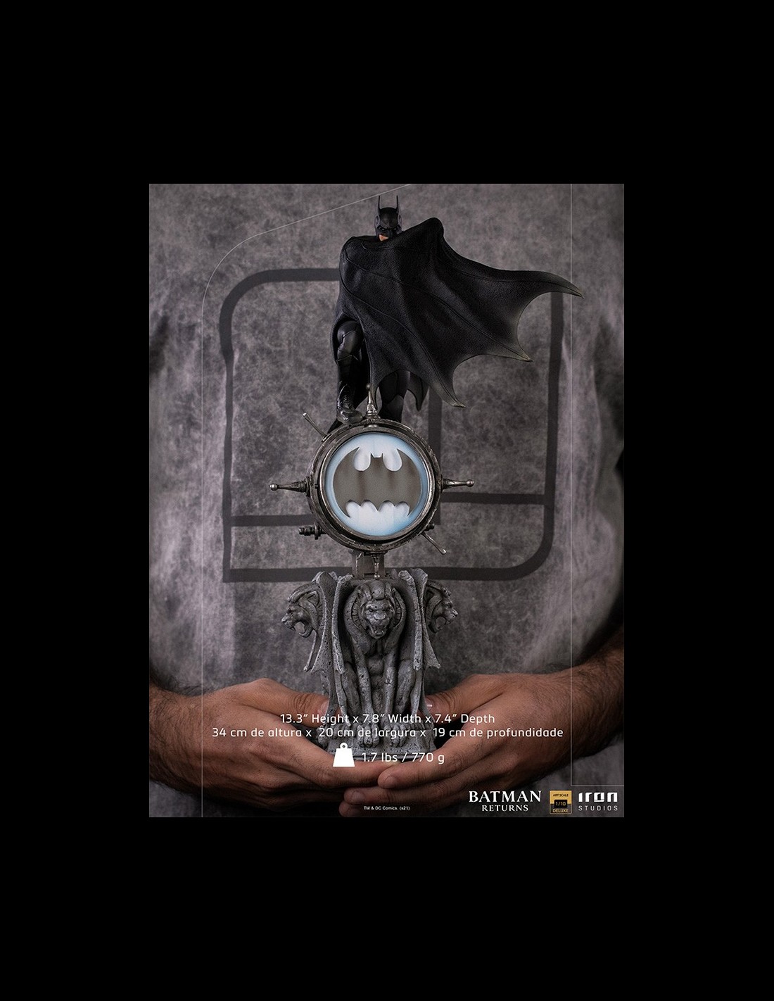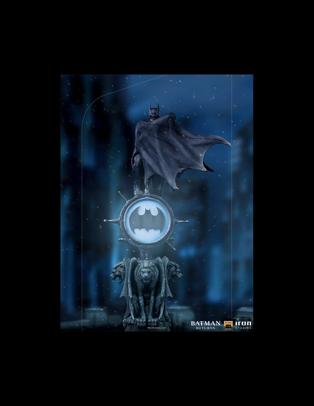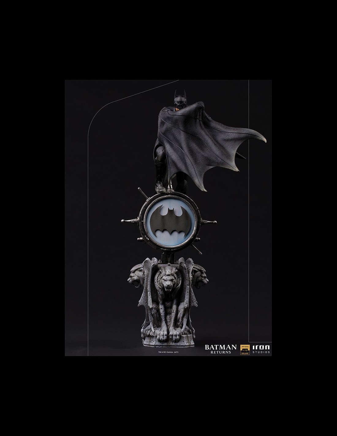 Da Iron Studios la statua di Batman versione Art Deluxe Scale 1/10, da Batman Returns del 1992 di Tim Burton. Su caratteristica base a totem sorretta da gargoyles la statua di Batman, avvolto nel suo mantello, appoggia sul Bat-segnale. La statua in resina dipinta a mano arriva in edizione limitata e si aggiunge alle statue di Penguin e Catwoman ispirate allo stesso film.