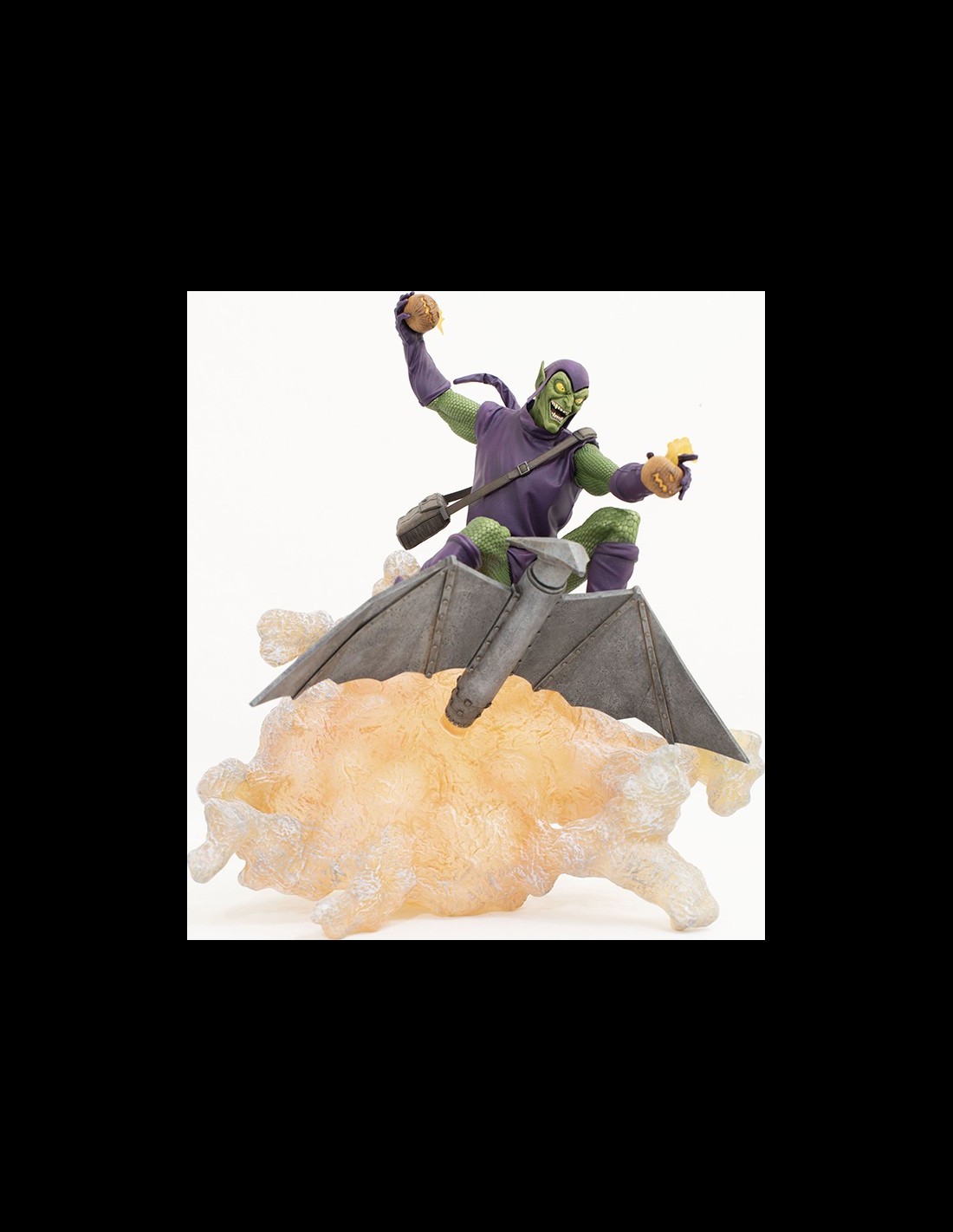 Statua alta 25cm che riprende il famoso supercattivo, in posa dinamica in volo sul suo iconico aliante.