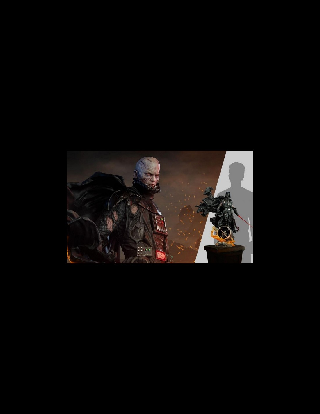 The Darth Vader Mythos Statue features a fully sculpted costume recreating both the intricate hardware of his cybernetic life support systems and the dynamic, flowing movement of his windswept robes and cape. Detailed tatters and tears in his black uniform reveal the burns he sustained during his most fateful duel as well as the mechanical limbs he was gifted with by his new master, Darth Sidious. Darth Vader’s robes also feature striking paint applications that reflect the glow of the flames and the red lightsaber in the figure, adding depth and dimension to the scene.